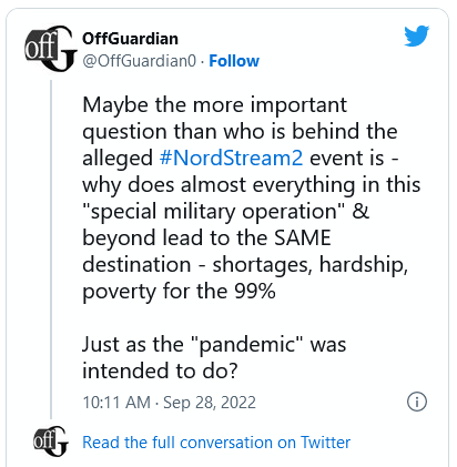 28. september 2022 Pozabite na igro obtoževanja, Nordstream Sabotage govori o veliki ponastavitvi in nič drugem. Kit Knightly Sinoči so poročali, da so “eksplozije” poškodovale oba plinovoda Nordstream, ki prenašata plin, izvožen iz Rusije v